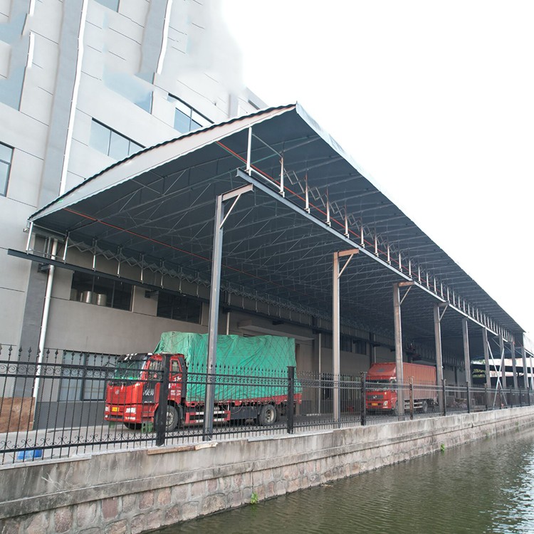 廠房過道大型懸空鋼結構電動伸縮雨棚